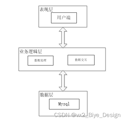 数据层(DL):由于本网上招聘系统的数据是放在服务端的mysql数据库中,因此本属于服务层的部分可以直接整合在业务逻辑层中,所以数据层中只有数据库,其主要完成本网上招聘系统的数据存储和管理功能。