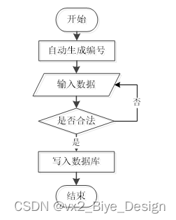 用户成功登入系统后就能够实现增加数据的操作,增加数据的编号是特定的,系统生成,用户不能随意填写,除了编号以外,其他增加信息用户自己填写,填写后的信息经过系统验证,验证合法通过就显示增加数据成功了,相反的话,就没有增加成功,图2-1显示的就是在增加数据时的流程。