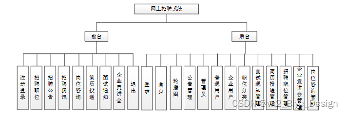 本章主要讨论的内容包括网上招聘系统的功能模块设计、数据库系统设计。