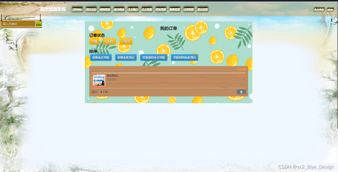 (6)我的订单:用户在提交订单后,可以对提交的订单进行管理。