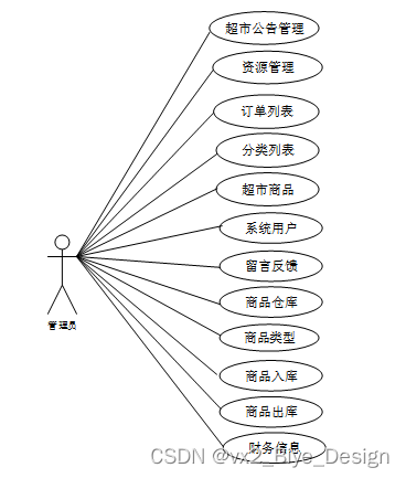 web后台管理上的管理员是维护整个超市管理系统中所有数据信息的。管理员角色用例如图2-4所示。