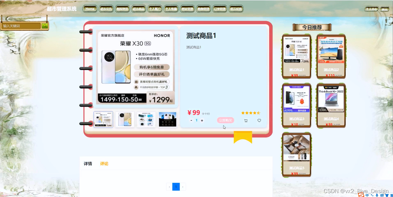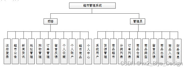 按照超市管理系统的角色,我划分为了顾客管理模块和管理员管理模块这两大部分。