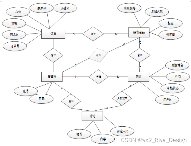 下面是整个超市管理系统中主要的数据库表总E-R实体关系图。