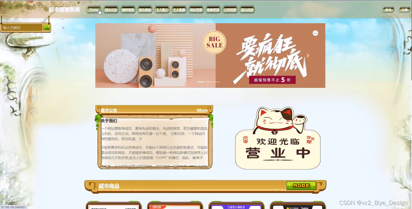 Keywords:Java technology; MYSQL; Supermarket management system
