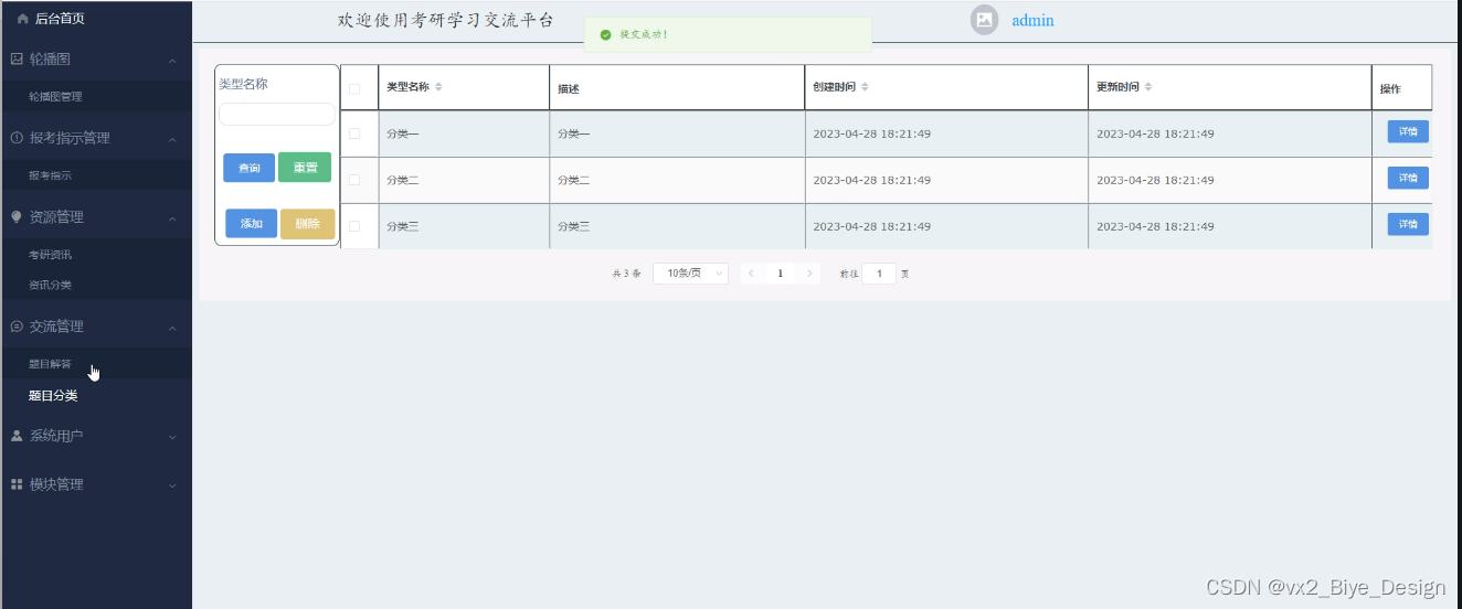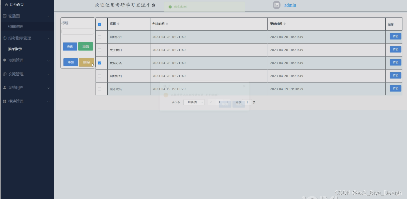 6.管理员功能,管理员可以对用户或者考研资料进行管理。