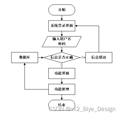 用户打开客户端并进入系统后,会先显示登录界面,输入正确的用户名和密码,系统自动检测信息,若信息无误,则用户会进入系统功能界面,进行操作,否则会提示错误无法登录,操作流程如图3-3所示。