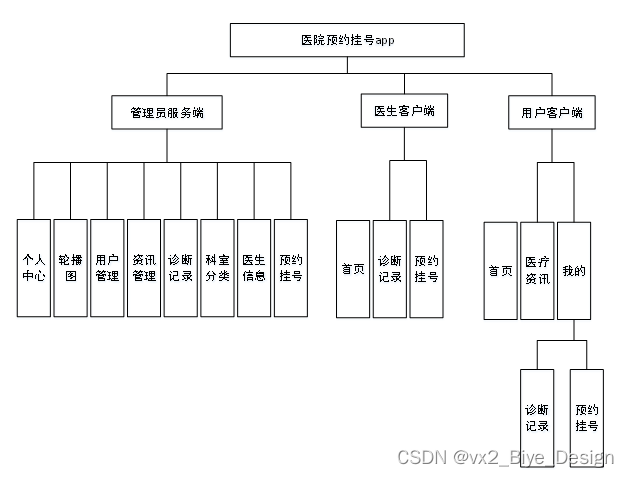 系统架构图属于系统设计阶段,系统架构图只是这个阶段一个产物,系统的总体架构决定了整个系统的模式,是系统的基础。基于医院预约挂号的整体结构设计如图4-2所示。