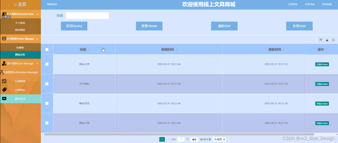 在本次线上文具商城中,利用了目前市场上普遍使用的PHP技术,以及数据库管理功能MySQL,和目前比较流行的Thinkphp框架,最后配合使用到了VUE页面布局技术进行系统界面的布置,以现实生活的线上文具商城过程为标准,设计实现了公告、公告查询、资讯浏览、地址、订单、购物车、点赞收藏、评论等功能,并维护好后台的信息和整体系统的稳定性。