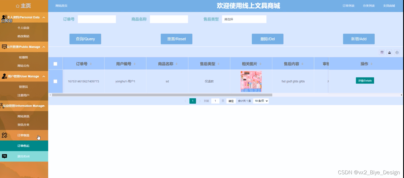 管理员执行订单售后管理,并可以操作相关内容,例如添加,查看,编辑和删除。通过单击“添加订单售后”,可以通过订单售后添加界面添加详细信息并添加订单售后注释。单击查看字段级别链接以查看有关所选字段级别的信息。然后单击“提交”跳转重返到添加页面。添加成功后的信息会载入到订单售后查询列表中,管理员可进行编辑以及修改。