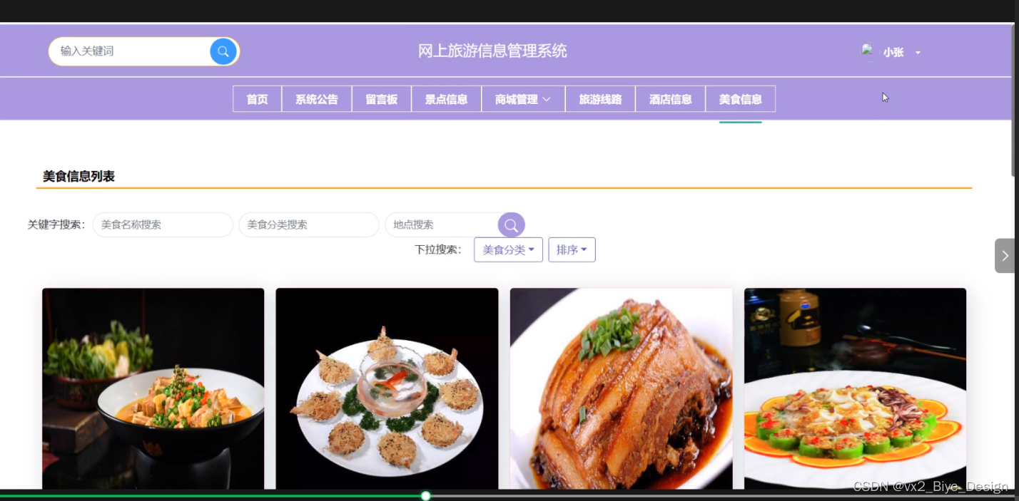 - 商城管理:管理员可以对景点信息和分类列表信息进行进行查询、重置、添加和删除操作,可以查看订单列表中某一订单信息详情,可以对订单列表进行查询、重置和删除操作。