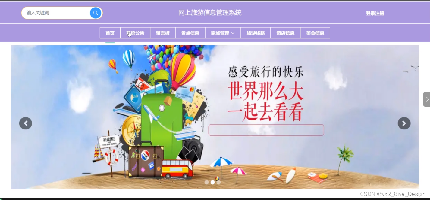 (1)首页:用户可以查看首页展示的轮播图、景点信息等内容。