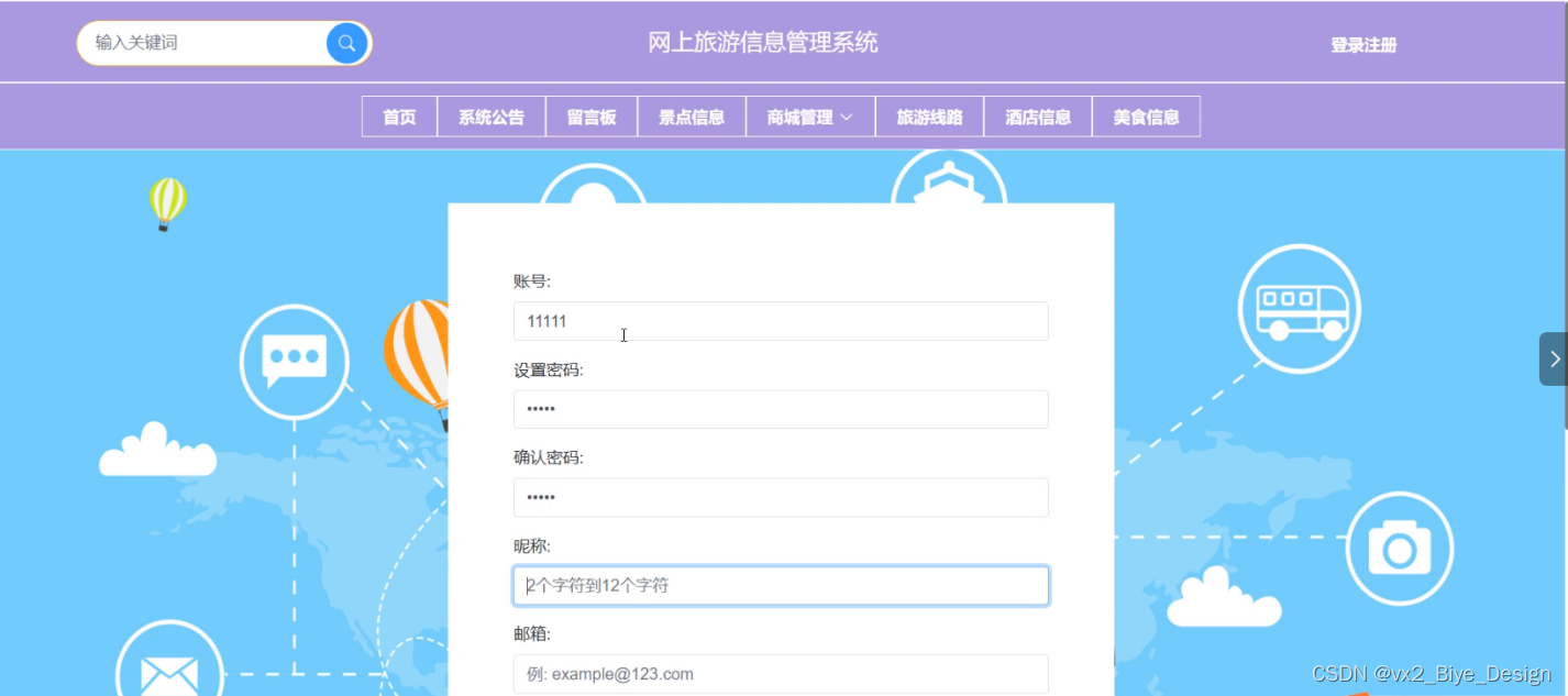 (2)注册登录:访客可以通过注册成为系统用户,注册后可以用账号密码登录系统。