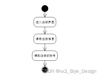 用户管理针对所有用户和管理员。未注册用户点击注册,进入注册页面填写新用户信息,得到自定义生成账号后,注册完成。未注册用户注册的活动图如下图所示。