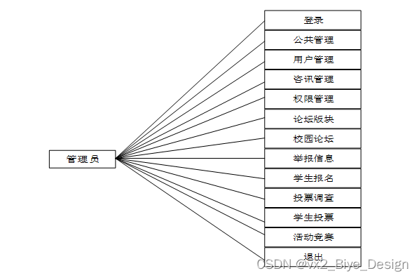校园论坛设计主要是促进学生之间的交流与合作,拓宽知识视野。本系统按照功能分为管理员和学生用户。以下是从这两种用户的角度分别介绍本系统所要实现的功能。