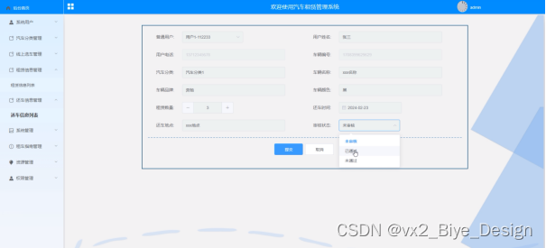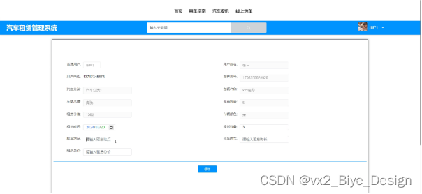 ● 租赁信息:查看和管理用户的租车订单,包括取车地点、租车时长、租赁状态等信息。