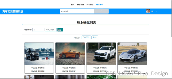 - 线上选车管理:维护和管理每辆汽车的详细信息,如车辆名称、配置、照片、租赁价格等。