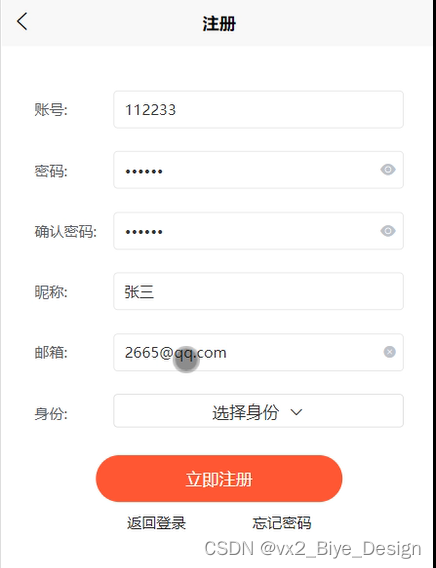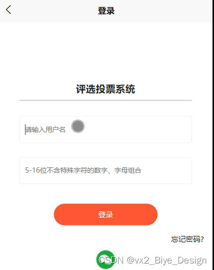 在微信小程序的评选投票系统中,用户可以通过输入账号、密码和其他信息来完成登录,如图5-1所示。
