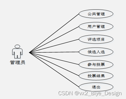 (3)在微信小程序评选投票系统中,首先要确定系统的技术,然后进行在线确认,以确定系统的用户角色,并根据这些角色划分出相应的功能模块。系统的设计主要将用户分为管理员和用户角色,每个角色都有其独特的特点,而且每个功能模块都有其特定的功能,但是系统的数据库都是交互式的,用户可以随时根据自身的需求查看课程信息,而系统的工作人员则可以根据自身的职责,处理和操作在线信息。管理员可以快速收集用户的详细信息,并能够在第一时间响应客户的需求。