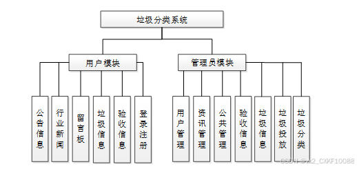 总体结构设计是对系统的整体架构和组成进行规划和设计,包括各个模块、组件之间的关系和交互方式。通过总体结构设计,确定系统的层次结构、模块划分和接口定义,确保系统具有良好的可扩展性、可维护性和高效性。总体结构设计提供了一个框架,指导后续的详细设计和开发工作,并确保系统能够满足用户需求和预期目标。系统功能结构图如下所示。