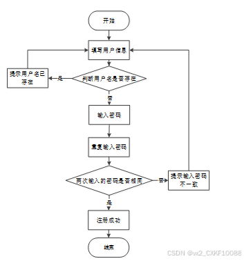 用户填写必要的注册信息,如用户名、密码和个人资料等,并进行提交。系统将验证输入信息的有效性和唯一性,如果满足条件,则创建新的用户账户。注册成功后,用户可以使用所创建的账户登录系统,并享受系统提供的各项功能和服务。用户注册流程图如下所示。