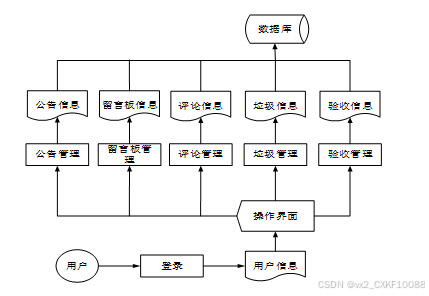 垃圾分类系统能够满足用户登录注册、浏览首页、获取公告信息和行业新闻、留言交流、查询垃圾信息和验收信息,以及管理个人中心的需求。管理员则可以管理系统的首页信息、公共内容、用户账户、资讯、垃圾分类、垃圾信息、垃圾投放和验收信息等。