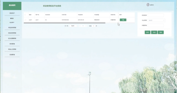 1. 系统用户管理:管理员可以全面管理系统内的用户信息,包括管理员自身、校友用户和查询用户。他们可以重置、添加用户账户,确保所有用户账户的有效性和安全性。此外,管理员还能监控用户活动,维护系统的正常运行。