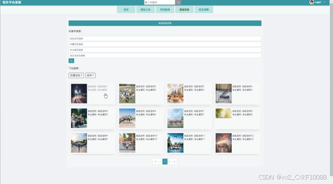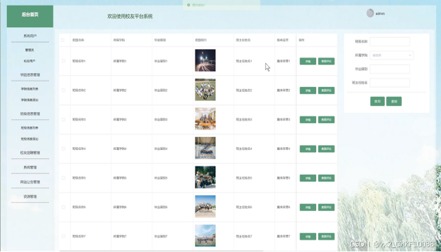 In practical operation, the system has been widely applied and validated. Through a user-friendly interface and convenient operating procedures, the system provides users with efficient and accurate alumni information management services. At the same time, the system also supports flexible expansion and customization to meet the needs of different schools and alumni organizations.