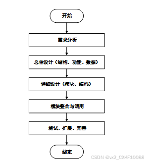校友平台系统开发时,首先进行需求分析,进而对系统进行总体的设计规划,设计系统功能模块,数据库的选择等,本系统的开发流程如图2-4所示。