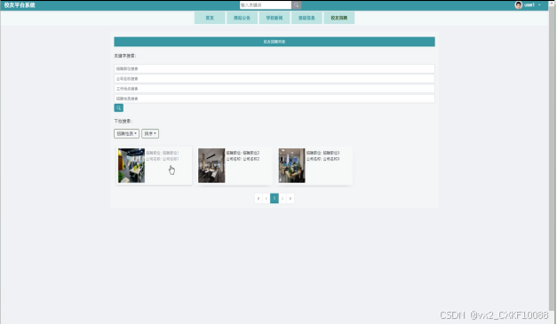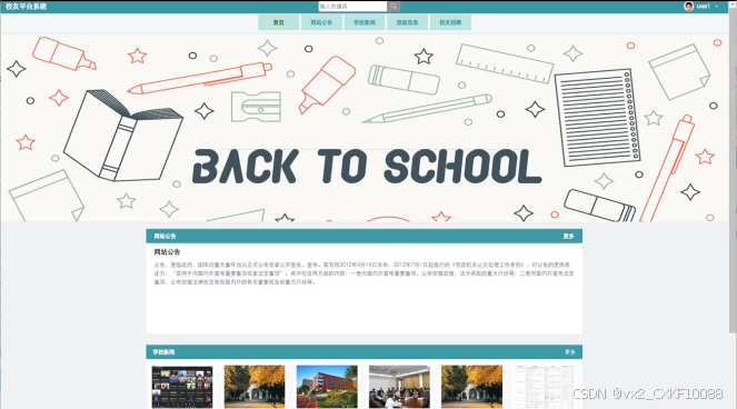 1. 首页浏览:校友用户登录平台后,首先会来到首页。在这里,他们可以迅速浏览到网站公告、学校新闻等重要信息,了解学校的最新动态和平台的重要通知。