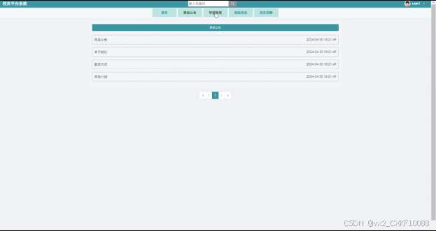 6. 网站公告管理:管理员负责发布、查询、删除和添加网站公告。这些公告可能包括学校新闻、活动通知或其他重要信息。管理员可以通过网格公告的形式展示这些公告,确保用户能够及时获取到最新信息。