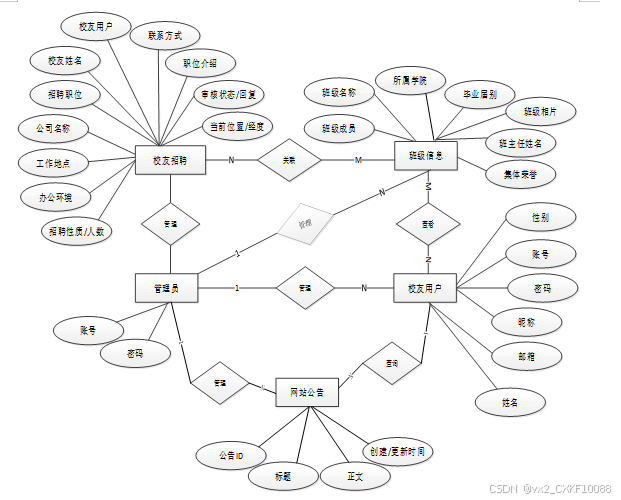 下面是整个校友平台系统中主要的数据库表总E-R实体关系图。