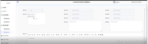医疗服务管理:管理医疗服务的信息和流程,包括诊疗服务、手术安排、床位管理等,以确保医疗服务顺畅进行。界面如下图4-12所示。
