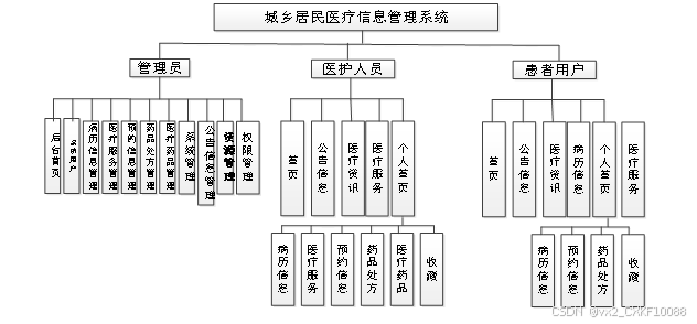 医疗信息管理系统我划分为了患者用户、医护人员和管理员模块这3大部分。