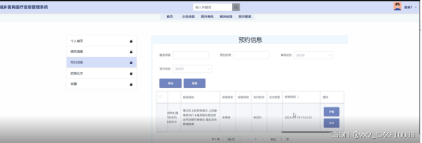 预约信息:用户已经预约的医疗服务信息,方便用户查看和管理。展示页面如图4-8所示。