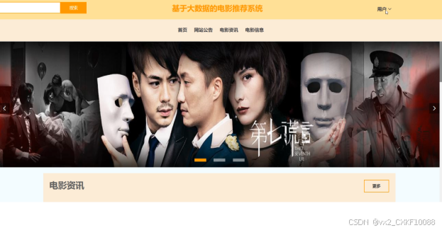 (2)查看电影推荐系统的首页信息:电影推荐系统的首页信息包含了首页、网站公告、电影资讯、电影信息等。