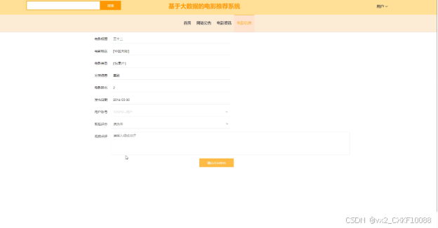 | 测试流程 | 1)点击电影评分管理,然后点击添加后并填写信息。 2)点击进行提交。 |