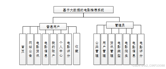 电影推荐系统我划分为了普通用户模块和管理员模块这两大部分。