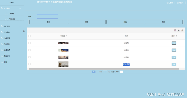 (2)公共管理:管理员点击“公共管理”菜单可以对首页展示的轮播图和网站公告信息进行管理。