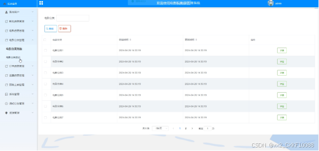 管理员点击“电影分类”可以查看到所有的电影分类,可以对其进行增删改查操作。电影分类管理界面如下图4-13所示。