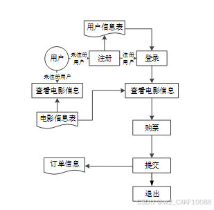 分析完电影院购票管理系统的数据流,那么接下来我们来看系统的业务流程,图2-4就是业务流程图: