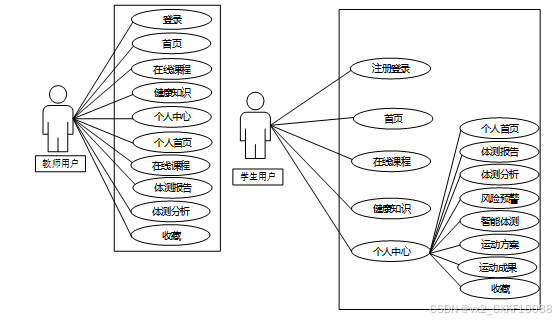 大学生体质管理系统中用户角色(学生用户和教师用户)用例图如图2.2所示: