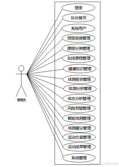 大学生体质管理系统中管理员角色用例图如图2.3所示:
