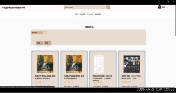 - 校园资讯管理:发布和管理校园内的资讯信息,为学生提供全面的校园生活内容。