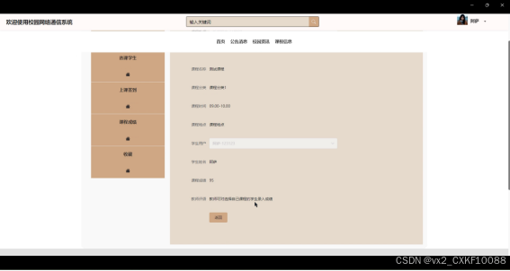 - 课程成绩:学生可以查看自己的课程成绩,了解学业情况。