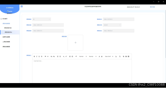 - 课程信息管理:教师可以管理课程相关信息,包括课程的添加、修改和删除等。