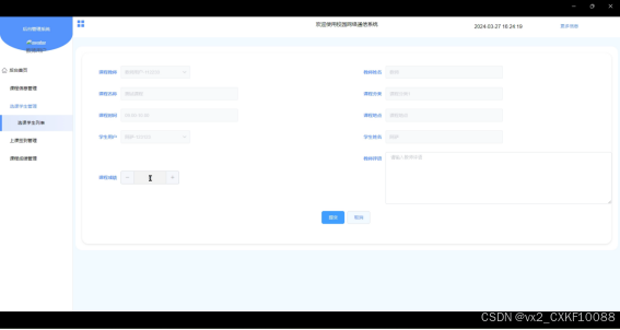 - 选课学生管理:教师可以管理学生的选课情况,包括选课的审核、课程容量管理等。
