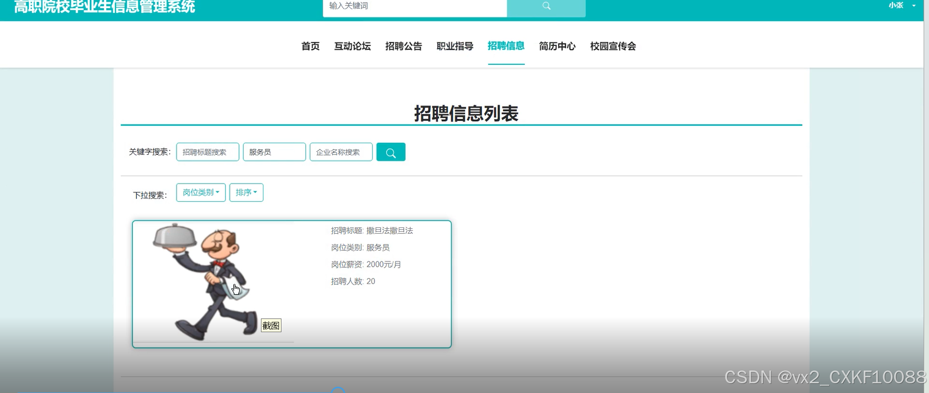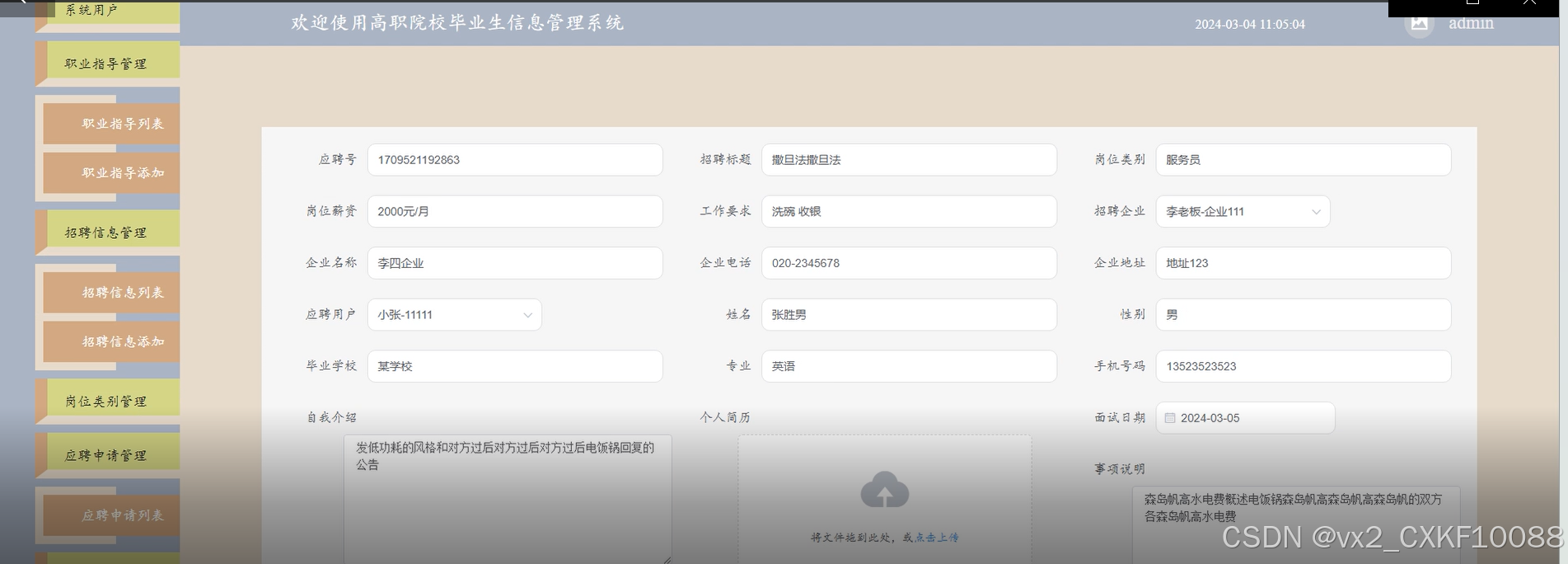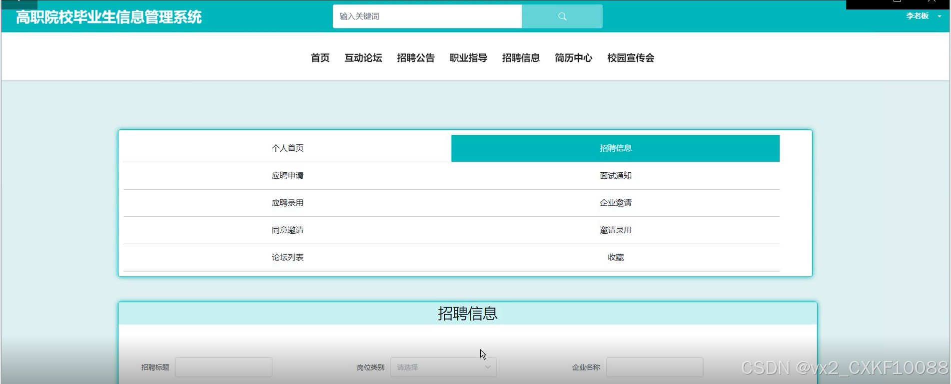 (5)招聘信息:详细列出各个企业的招聘信息,方便学生查看。