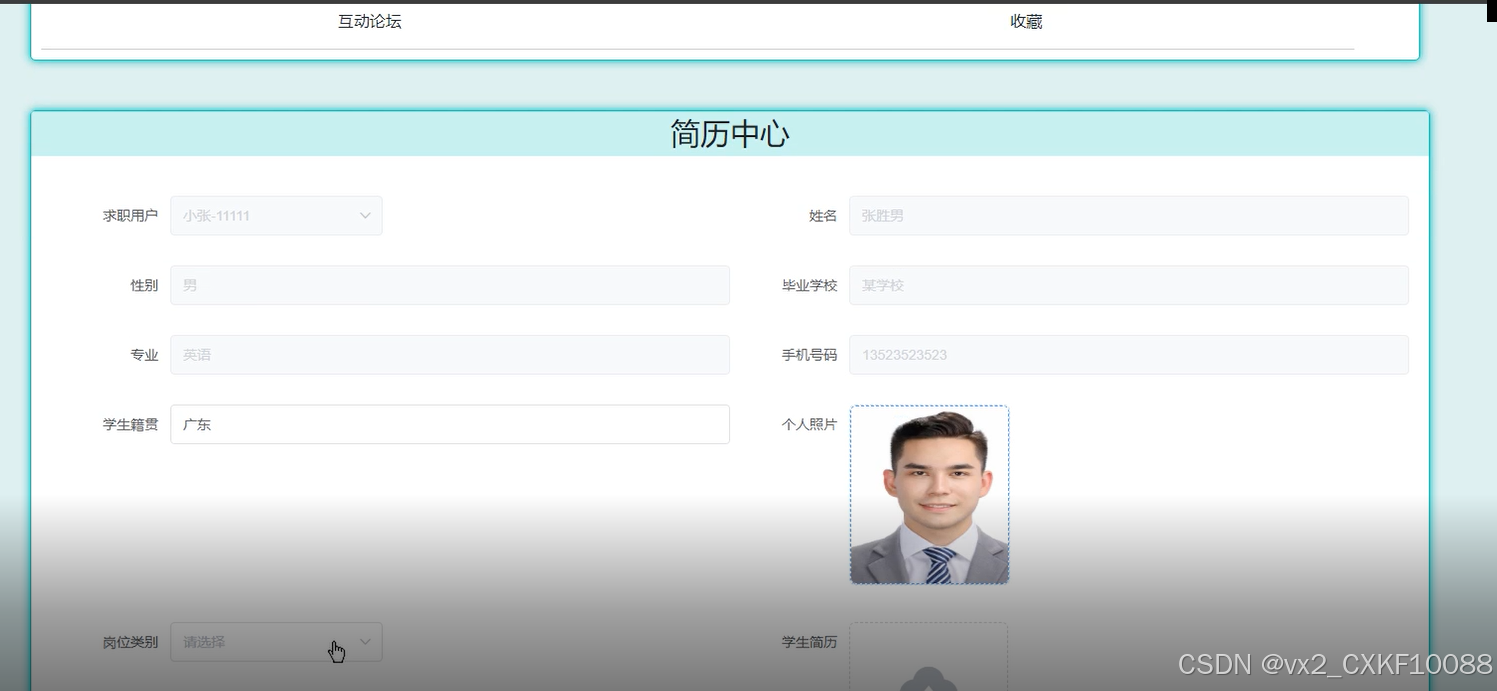 (6)简历中心:查看学生上传的简历,筛选符合条件的应聘者。