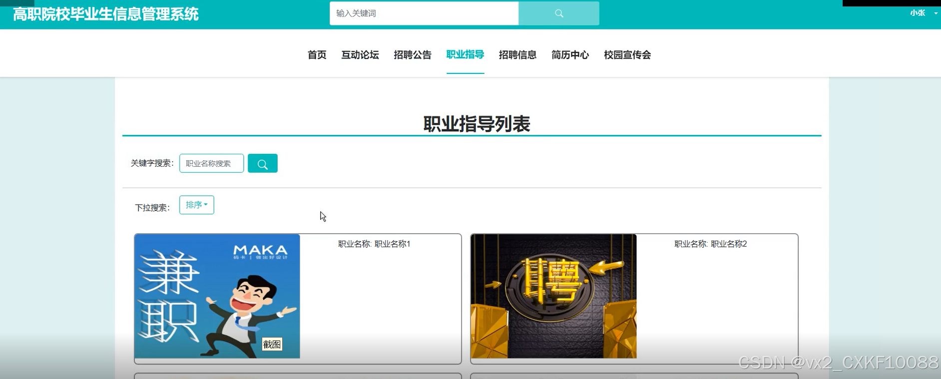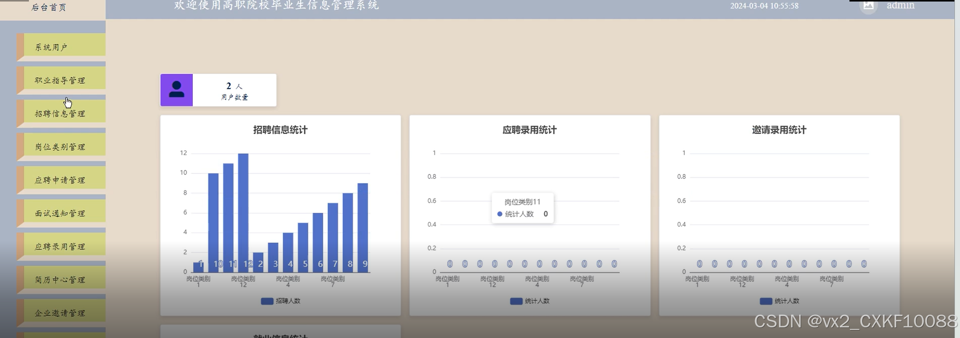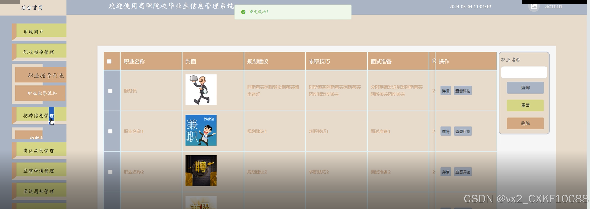 (2)职业指导管理:提供职业指导相关内容的管理,包括发布、编辑、删除等。