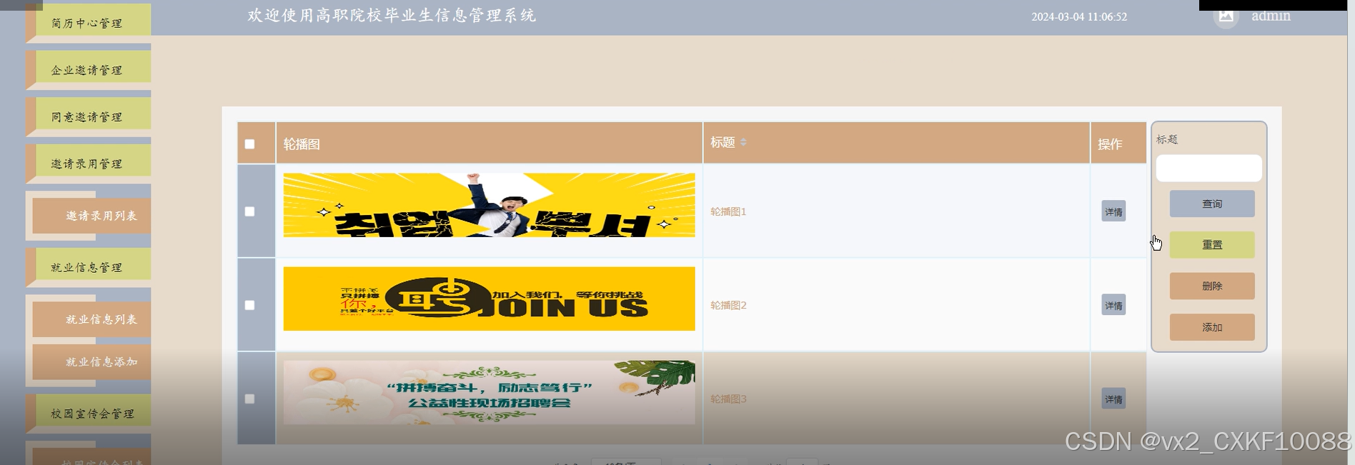 招聘信息管理:管理员可以发布、编辑和删除招聘信息,确保信息的准确性和及时性。界面如下图所示。